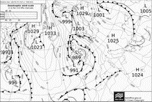 lombarde froide, l'anticyclone se situe sur l'Italie du Nord et les basses
